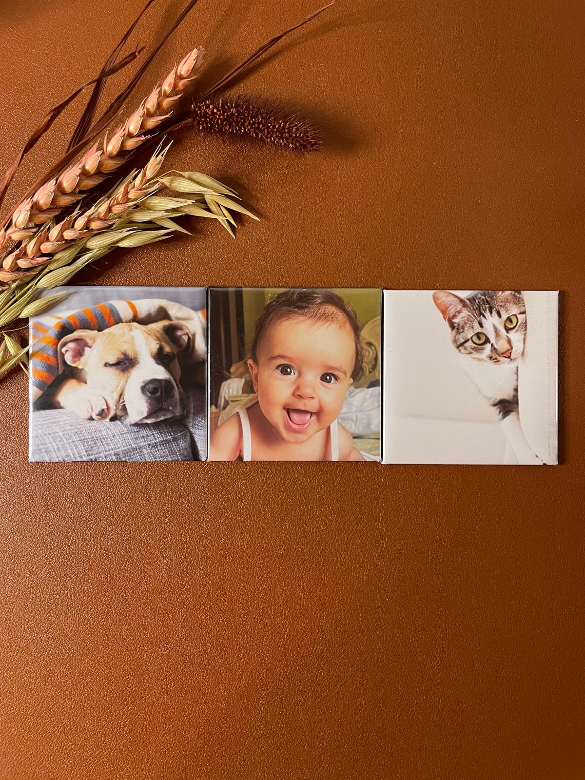 Elige tus fotos favoritas desde tu teléfono, ordenador o tablet. Luego, ajústalas al tamaño de 6,35 cm x 6,35 cm y, si estás satisfecho, pulsa "Cargar".